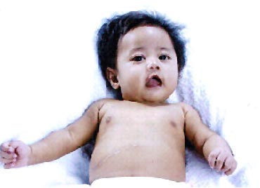 | This is a recent photo of baby Bea. Seen on her tummy is the scar after her previous operation. | ||||||